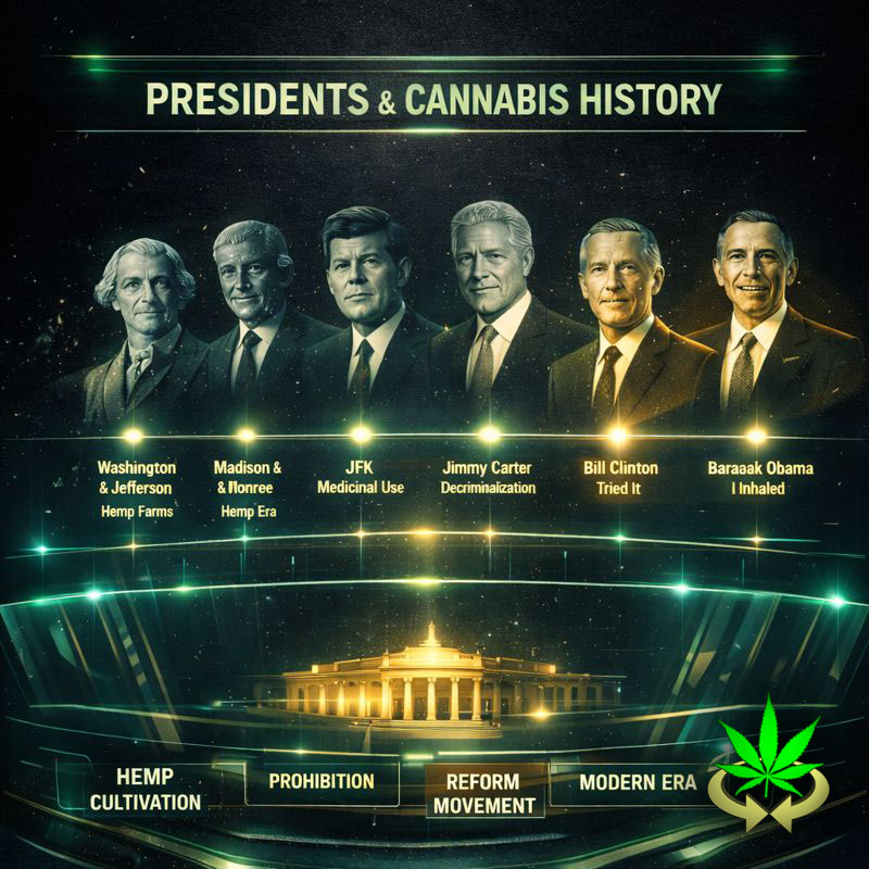 Presidents navigated war, economy, and culture while living in a nation where cannabis was once normal, then demonized, and now rediscovered. The arc isn’t about indulgence—it’s about realism.