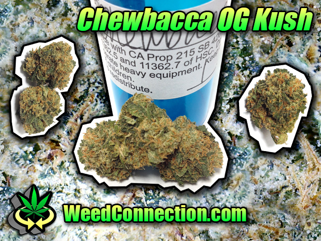 Chewbacca OG Kush is a heavy hitting indica Wookie weed that fades. This OG Kush is dense, sticky, stanky, and tasty. On special for ten dollars a gram if you are down with the Star Warz fam and our referral jam. Email for more information, support, subscribe, follow, and mention @WeedConnection