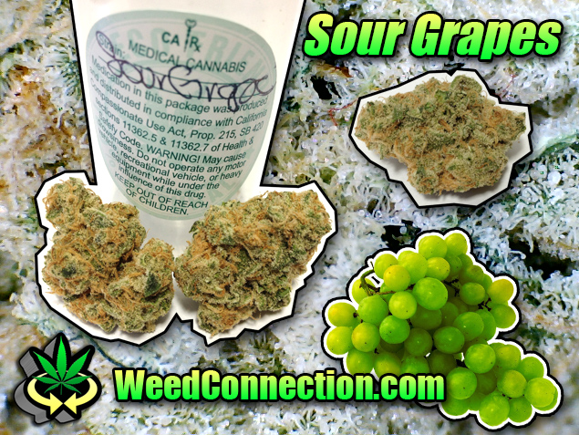 Sour Grapes is a hybrid cross between Sour Diesel and Grape Ape. This batch was acquired at OGR. The nugs are somewhat dense and very frosty. The buds have a sweet aroma and moderate grape flavor. The high is more on the upper side. This strain is dank, but some of the other sativas at this collective are better. Visit OGR and mention @WeedConnection