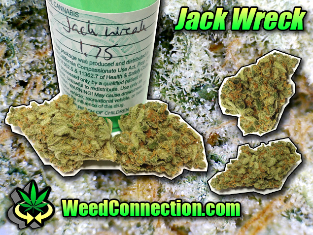Jack Wreck is cross of two of our favorite sativas: Jack Herer x Trainwreck. The nugs have a claw shaped structure, density, and light orange hairs, which are characteristic of Jack (also see Jack Flash) combined with the the frosty coat of trichomes that Trainwreck is known for. The smell and taste is a hybrid of the two strains: fruity, spicy, and piney. The fade is an upper and the high is functional with a slight case of the munchies. Get some of this new and highly recommended sativa at OGR and mention @WeedConnection