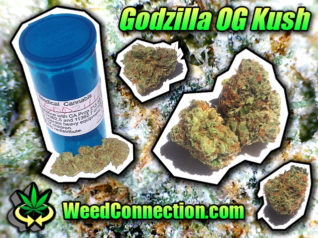 Godzilla OG Kush is a chill OGK strain. The nugs are fresh and dense, have the stanky danky flavor, and this bud fades alright, but there are much better selections, so keep reading and/or email for more information, locations, and custom recommendations. Support, subscribe, follow, share, like, and mention King Kong wins @WeedConnection