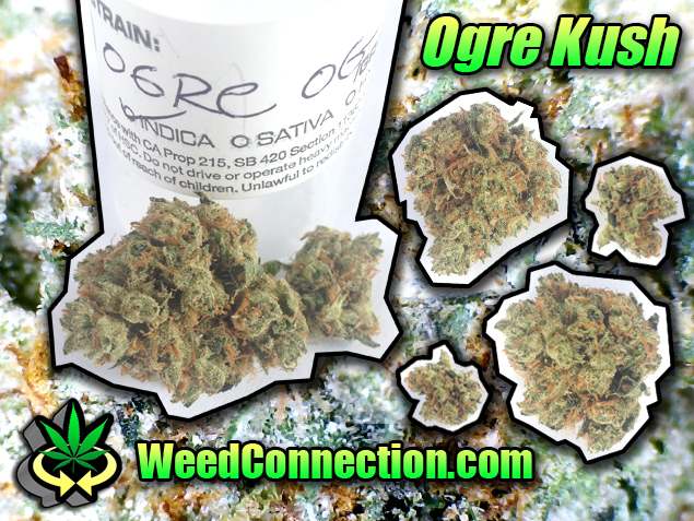 Ogre Kush is a chill Master x Bubba Kush cross. The batch photographed may or probably does not have additional OGK genetics. This heavy hitting indica dominant hybrid has a fade that hits with a quick euphoric feeling before working its way into a more mellow and relaxing high. The nugs are dense, but light, dark forest green, covered in little trichs, and smell pretty good with lemon/piney bubba flavor. This strain may cause feelings of inner peace, drowsiness, and the munchies. Available on special at a newer collective in Hollyweed.