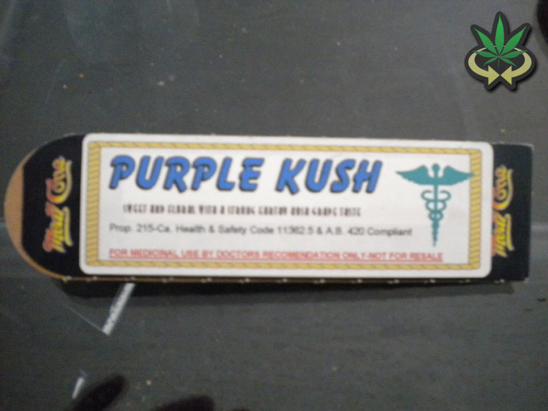 reads "Purple Kush," informs patients that this is for medical use only